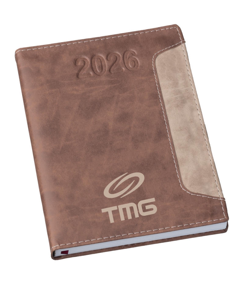 Agenda diária brochura 2026, capa emborrachada personalizada.